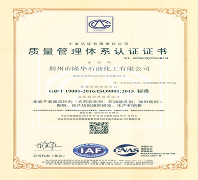 獲得了GB/T19001-2016/ISO19001:2015版質(zhì)量管理體系認(rèn)證書,GB/T24001-2016/ISO14001:2015版環(huán)境管理體系認(rèn)證證書,ISO45001:2018版職業(yè)健康管理體系認(rèn)證證書,通過了省,市安全,環(huán)保考評,監(jiān)測頒證,獲得“安全生產(chǎn)標(biāo)準(zhǔn)化”三級企業(yè)證書!